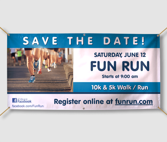 - Versatile—Vinyl banners are also extremely versatile and can be displayed in many different ways. Our vinyl banners come with free grommets and can be displayed indoors or out by securing them with bolts into a wall or hung using bungee cords, stringing rope or fishing wire. They can also be stored and used for future fundraising drives and other events, so you don’t have to invest in new advertising year after year.