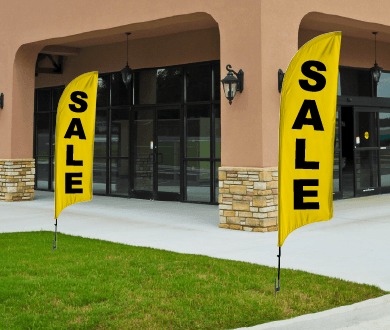 - They improve direct foot traffic—A report about out-of-home advertising by Nielsen found that 16 percent of people who see a sign or an advertisement displayed outside of a storefront visited the business immediately after seeing it. With this in mind, custom-made signs can help to boost store traffic during slower months and they maintain a steady stream of foot traffic compared to times where you don’t have signs displayed. Outdoor displays and feather flags are two perfect types of signage for this purpose.
