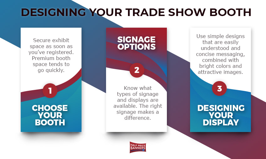 First impressions are important, especially when it comes to exhibiting at a trade show. Your trade show display’s design matters and it’s up to you to ensure it commands the attention of your audience. Just by looking at your booth, attendees should be able to get a sense of who you are, what you do and what sets you apart from your competitors. By choosing the right booth location and designing an eye-catching trade show display, you’ll be able to attract prospective leads and interact with customers so they can learn what your business is all about.