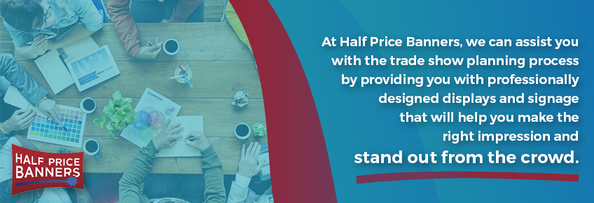The trade show experience is a valuable one, especially for small businesses. Trade shows offer businesses the unique opportunity to gain insight into industry trends and innovations, learn more about your competitors and connect face to face with your target audience. At Half Price Banners, we can assist you with the trade show planning process by providing you with professionally designed displays and signage that will help you make the right impression and stand out from the crowd. Contact us today!