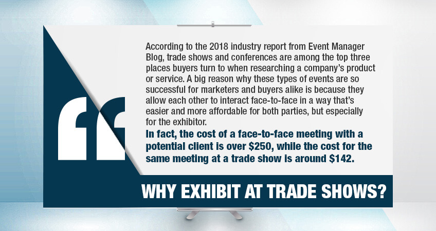 According to the 2018 industry report from Event Manager Blog, trade shows and conferences are among the top three places buyers turn to when researching a company’s product or service. A big reason why these types of events are so successful for marketers and buyers alike is because they allow each other to interact face-to-face in a way that’s easier and more affordable for both parties, but especially for the exhibitor. In fact, the cost of a face-to-face meeting with a potential client is over $250, while the cost for the same meeting at a trade show is around $142.