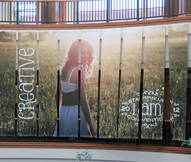 • Mesh Vinyl Banners—Also ideal for outdoor use, mesh vinyl banners use a porous, mesh design that allows wind to pass through easily. This makes them ideal for outdoor placement in windy areas, like on fences, poles and railings.