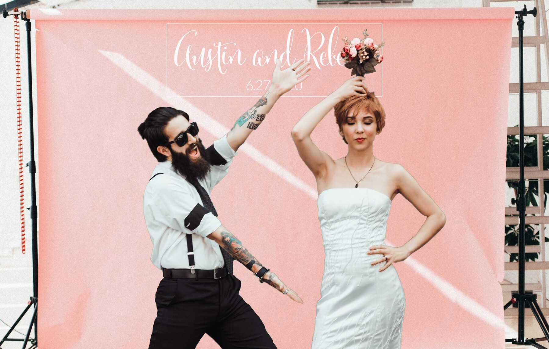 You’ve got your lights, your camera and your wedding backdrop — you’re almost ready to go! Here are a few more things to consider before setting up your photo booth. If you’ve got a wedding hashtag, make sure it’s easily visible so people can use it when they post photos to social media. You can add it to your photo backdrop or set a retractable banner close by to make sure everyone knows what it is. And don’t forget props! You can buy some off Etsy or have a crafty friend help make a few. After all, what’s a wedding photo booth without fake top hats and faux-mustaches?