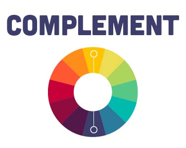- Complement: colors on opposite sides of the wheel that are high contrast (i.e. - yellow and blue)