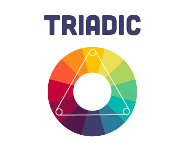 - Triadic: three colors that form a triangle on the wheel and are equidistant