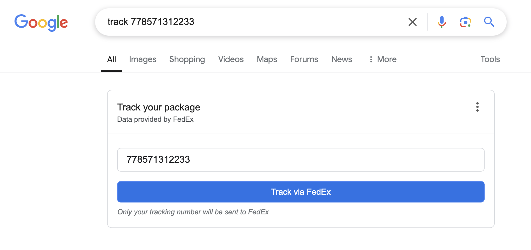 Step 4: Paste Tracking Number on Google to request delivery update