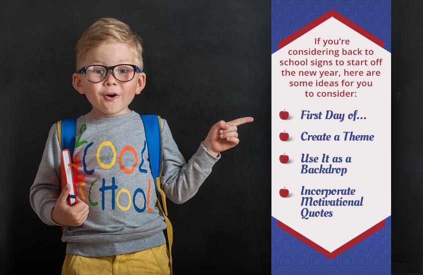 Beyond hugs, high-fives and handshakes, what better way to welcome students and teachers back on the first day of school than with a custom back to school sign? With a little creativity and thoughtful design, back to school signs can help eliminate first-day-of-school anxieties and get everyone excited to get started. If you’re considering back to school signs to start off the new year, here are some ideas for you to consider.