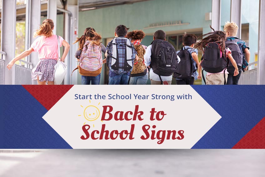 The school season is right around the corner and the countdown has begun as administrators prepare to welcome back their students and teachers for the upcoming school year. This is an exciting time of year, but the first day back can be a hard one for students and teachers alike. Not only are they feeling the effects of the end-of-summer blues, but anxieties are running exceptionally high. After all, there are new classes, schedules and faces to get used to, so it’s especially important that school administrators create a warm and inviting atmosphere. There are a variety of ways to do this, from decorating the hallways and classrooms to going out of your way to introduce yourself to unfamiliar faces. One of the best ways to welcome back students and teachers is with back to school signs. Back to school signs can be displayed on school grounds, inside hallways, classrooms and administrative offices or anywhere else on campus to engage students and teachers, both returning and new, and encourage them with a welcoming message.