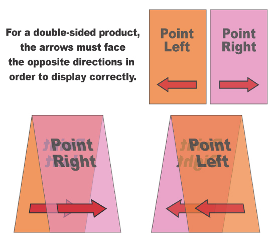 When it comes to double-sided banners with arrows, there are two ways to display your arrows to face direction you need. Pro tip: simply draw your arrows on two sticky notes and test it our yourself!