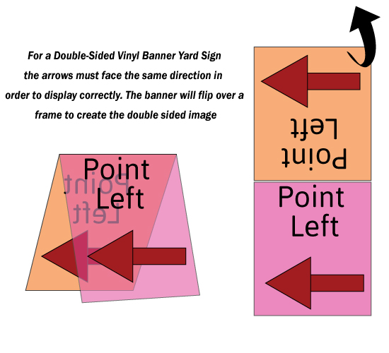 When it comes to Vinyl Banner Yard Signs, the way you place your arrows will be slightly different! Since this display is printed on one side of a banner, you will need your arrows facing the same way when making your artwork. Once the banner is printed, it will lay over a frame and create a double-sided display! Once your banner is flipped over the frame, the arrows will be facing the same direction!